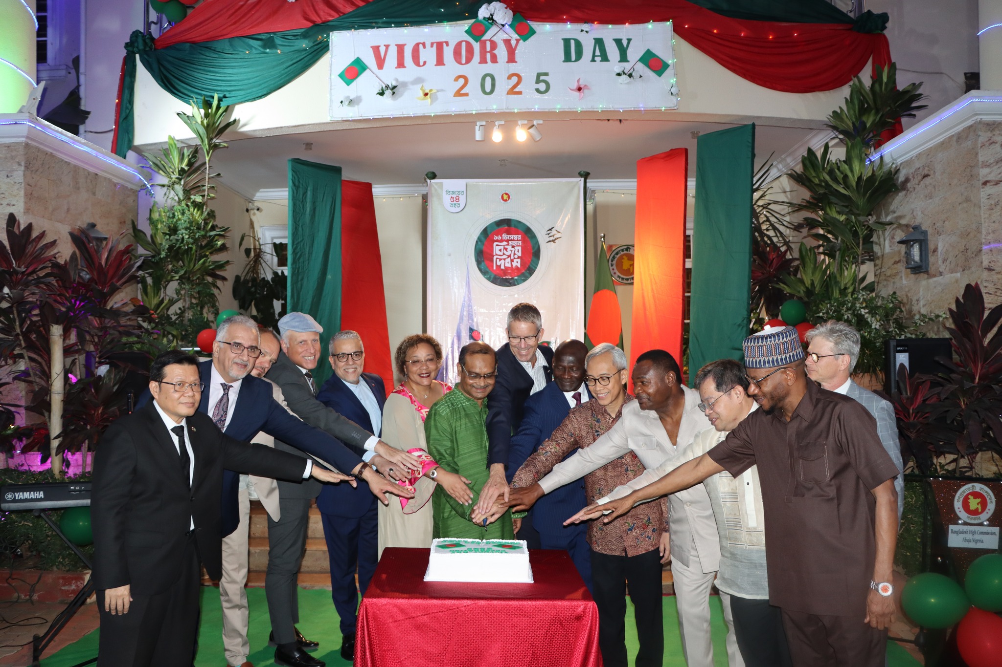 ১৬ই ডিসেম্বর ২০২৫ তারিখে নাইজেরিয়ার রাজধানী আবুজায় বাংলাদেশ হাইকমিশন যথাযোগ্য মর্যাদা ও গুরুত্বসহ মহান বিজয় দিবস পালন করে। অনুষ্ঠানের প্রথম পর্বে, দূতাবাসের কর্মকর্তা-কর্মচারীবৃন্দ, দূতাবাস পরিবারবর্গ ও প্রবাসী বাংলাদেশীদের উপস্থিতিতে